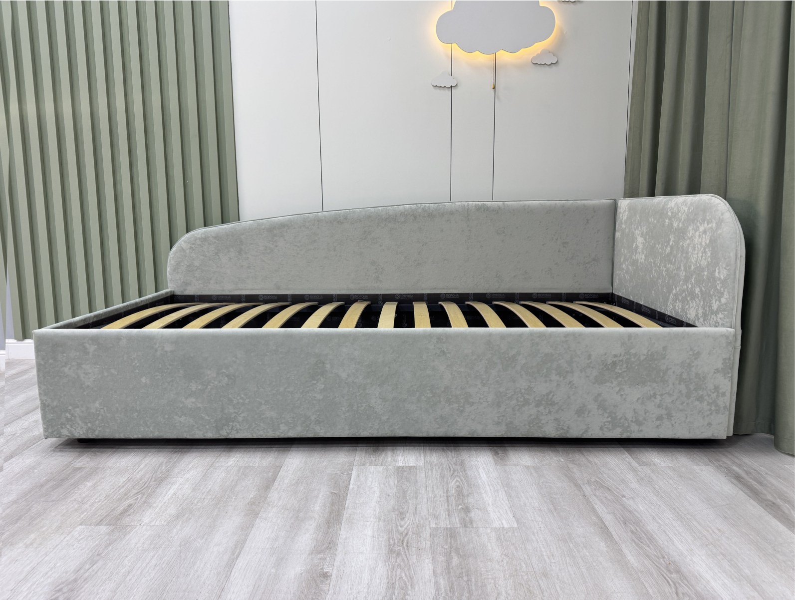 Обратите внимание, что кровать в базовой комплектации идет с логотипированной универсальной спинкой.