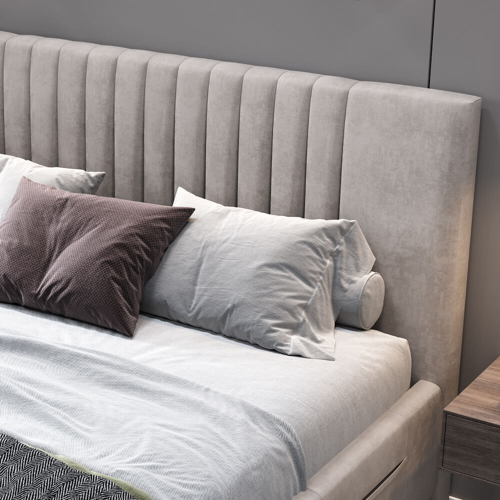- Дизайн с вертикальными линиями изголовья, разбавят монотонность интерьера.