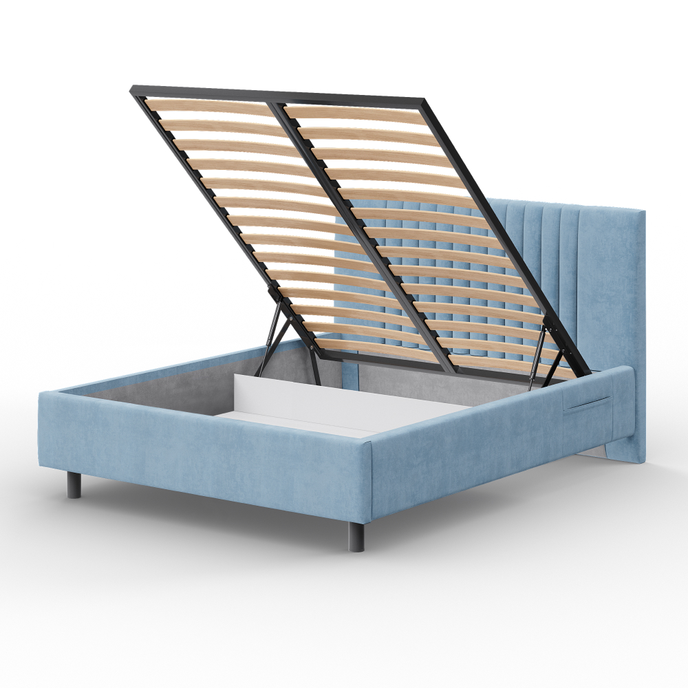 - Имеет полный набор доступных опций: комплектация подъёмным механизмом, настилом, ортопедическим основанием.