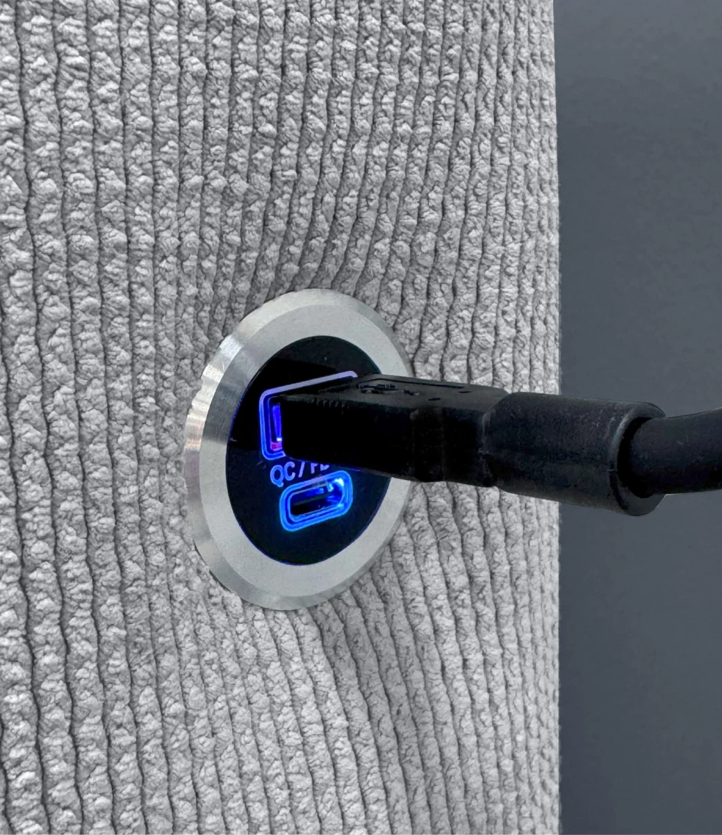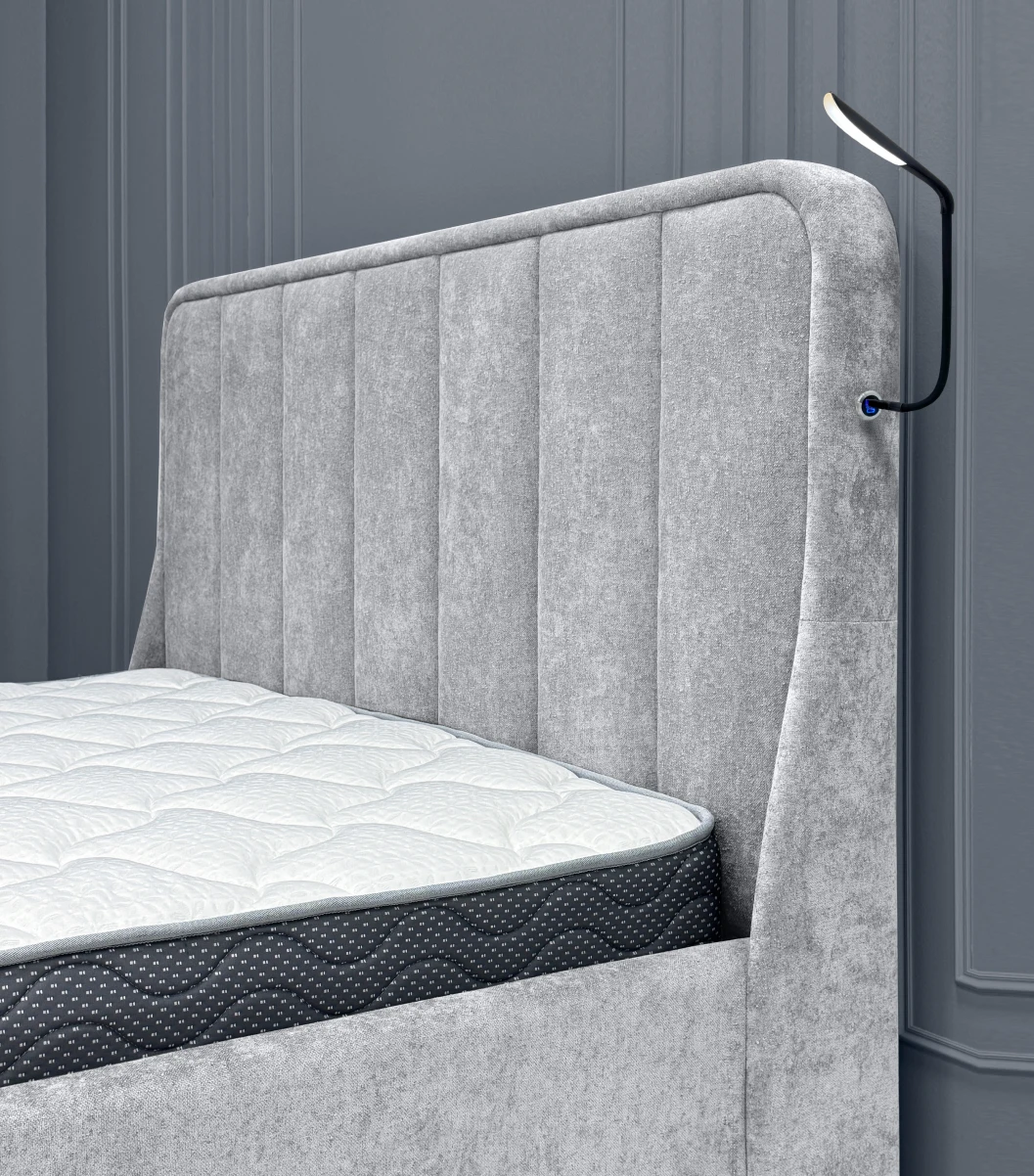 Интерьерная кровать «МИЛЕНА 2» - трендовая модель выполненная в популярном дизайне с округлыми формами и отдельными пышными вставками с вертикальной прямой геометрией. Возможность дополнительного оснащения: разъем с подсветкой с USB и Type-C разъемами для быстрой зарядки устройств прямо в кровати и LED-светильник с 3 режимами освещения на гибкой основе для максимально комфортного освещения.