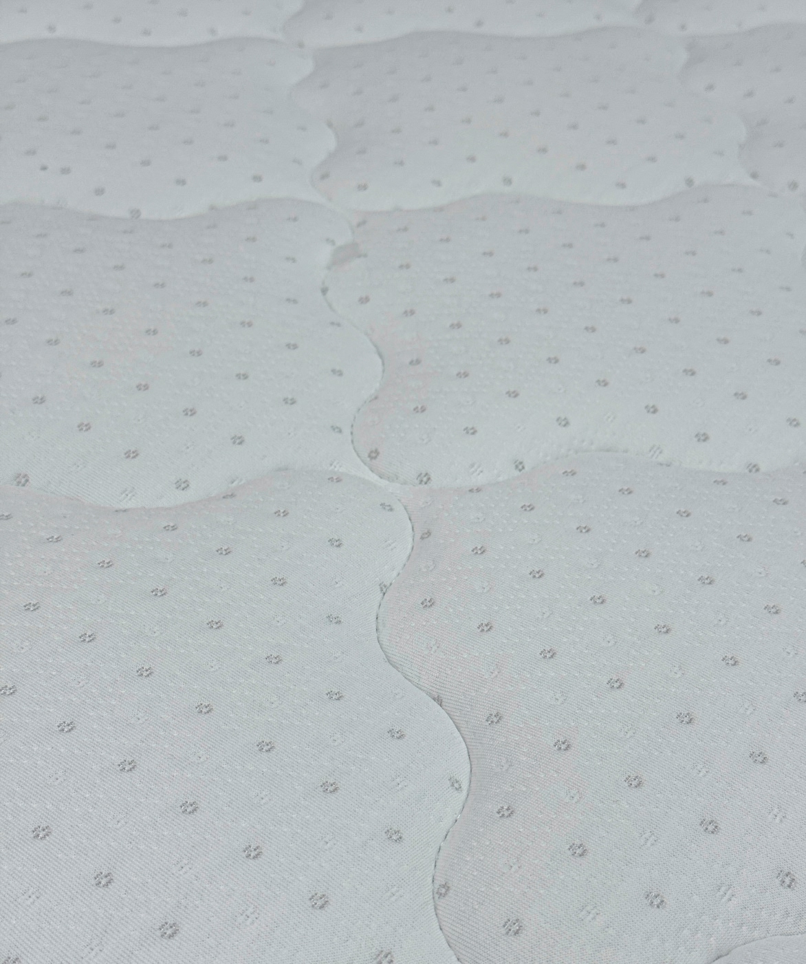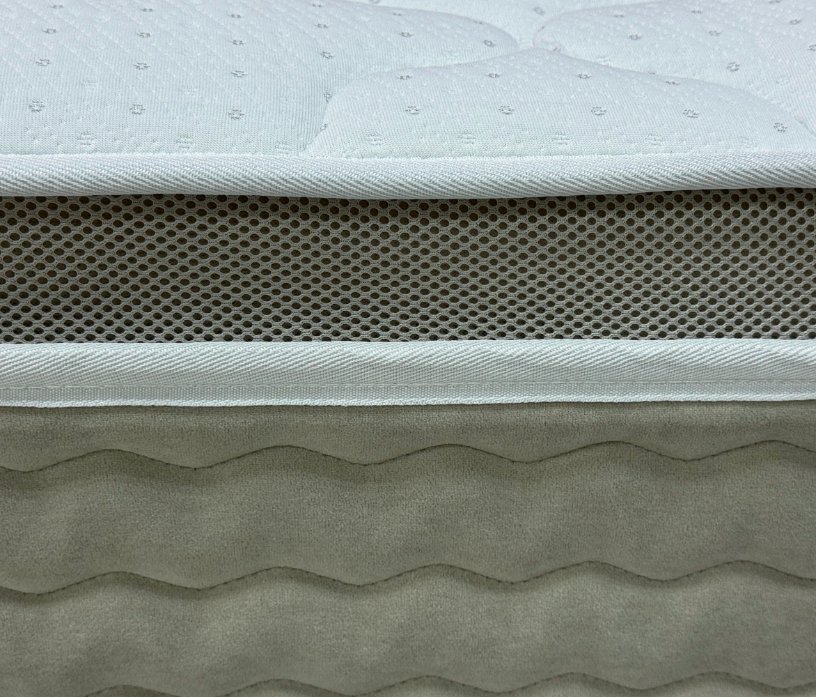 Чехол матраса простеган комбинированной стежкой с наполнителем из синтепона плотностью 300 г и пеной толщиной в 10 мм. Данная комбинация позволяет дольше сохранять пышность чехла при длительной эксплуатации.