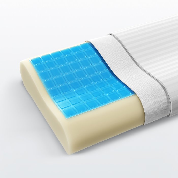 Подушка ортопедической формы с охлаждающим гелем «Aquagel». Особый состав геля сохраняет изначальную температуру и не нагревается в первые несколько минут использования подушки. Приятная прохлада способствует расслаблению и переход в быструю фазу сна будет комфортным и более эффективным. Чехол всех моделей подушек выполнен из хлопкового страйп-сатина. Эта натуральная ткань, используемая для качественного постельного белья, прекрасно дышит, и обеспечивает отличный воздухообмен.- Состав: формованная анатомическая пена с эффектом памяти «Memorix» с охлаждающим гелем «Aquagel»
