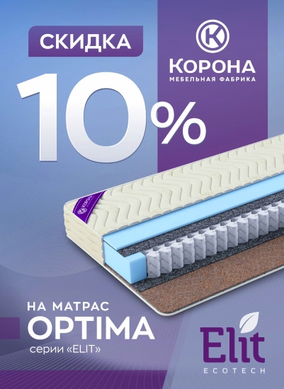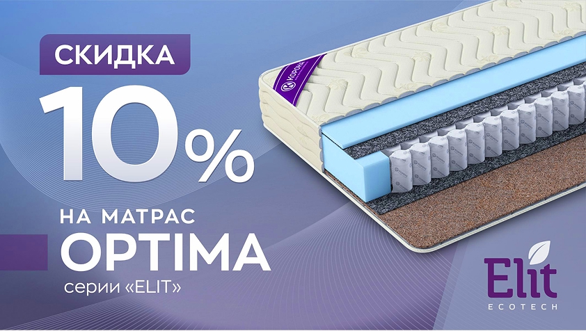 Скидка 10%  на матрас Elit «Optima». Акция действует с 01.11.2025г. до 30.11.2025г.